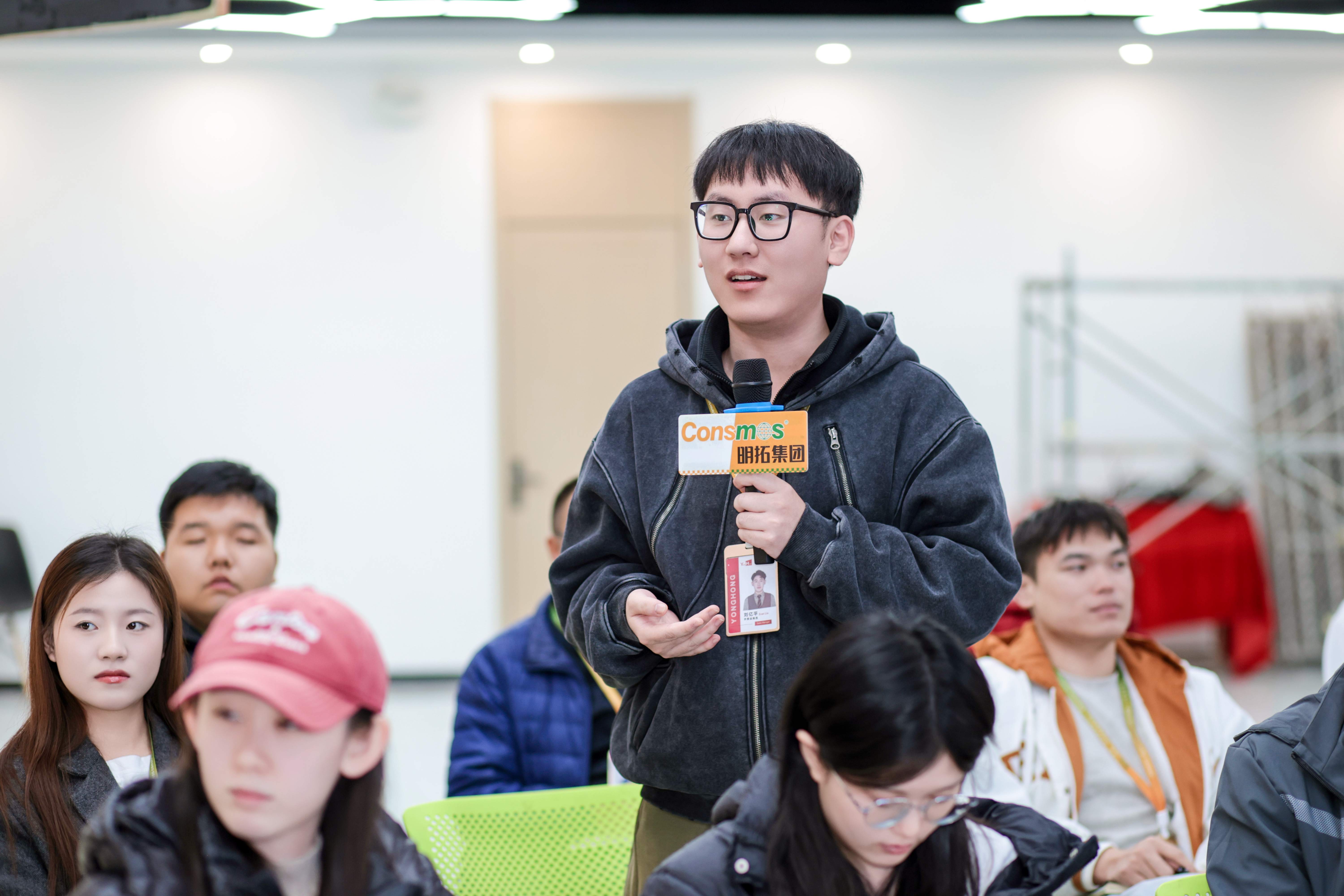 永鸿国际外贸业务员刘亿平分享了对企业品牌与名称的深度理解。通过前期学习与本次座谈会的交流,他深刻领悟到“明拓”蕴含的“开拓进取”精神,以及核心品牌“CONSMOS”的深层内涵。他表示,将以“让世界爱上中国造建材”的企业使命为指引,在实现个人理想抱负的同时,助力企业海外业务发展。