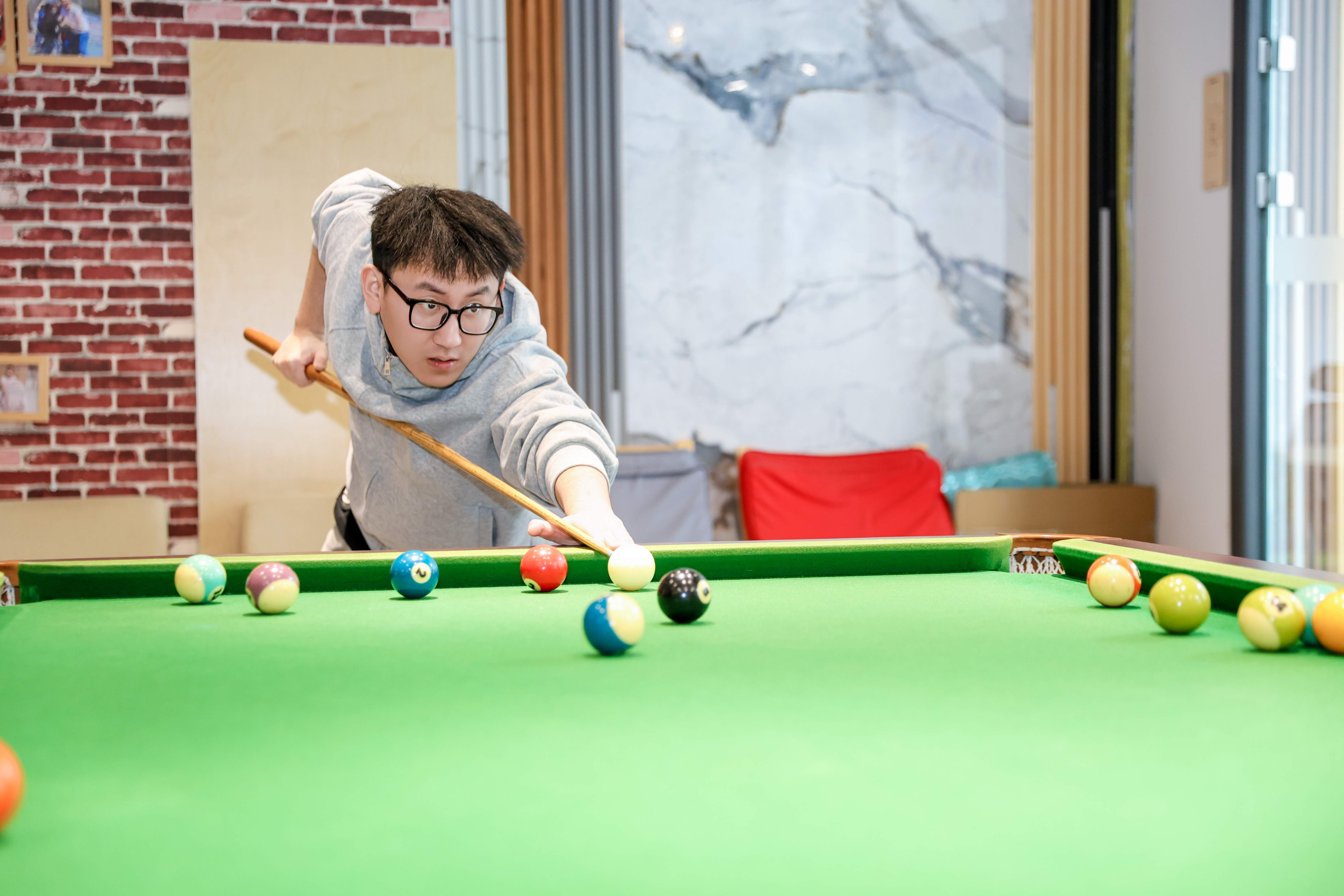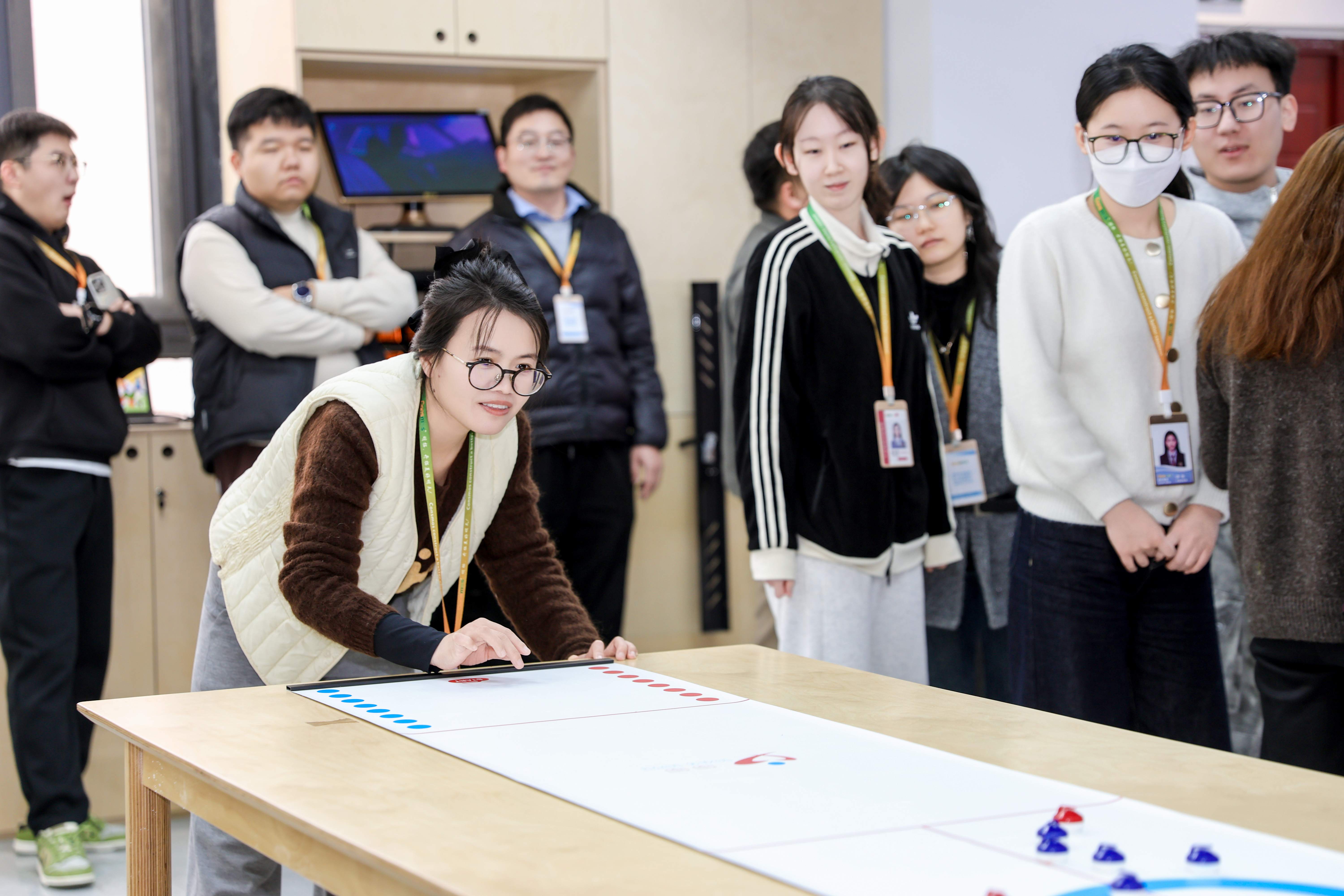 台球桌前,选手们架杆、瞄准、推杆一气呵成,眼神专注如鹰隼,指尖稳定似磐石;沙包投掷区前,大家站在指定线后,反复调整站姿与发力角度,单手抛出的沙包在空中划出优美弧线;桌上冰壶赛场堪称“指尖上的博弈”,选手们推送壶体时既要控制力度避免越线,又要巧妙利用碰撞改变轨迹,让壶体稳稳停在圆心附近;五子棋棋盘前则是另一种“无声的较量”,黑白棋子交替落下,选手们时而托腮沉思,时而快速落子,在直线与斜线间编织制胜棋局。