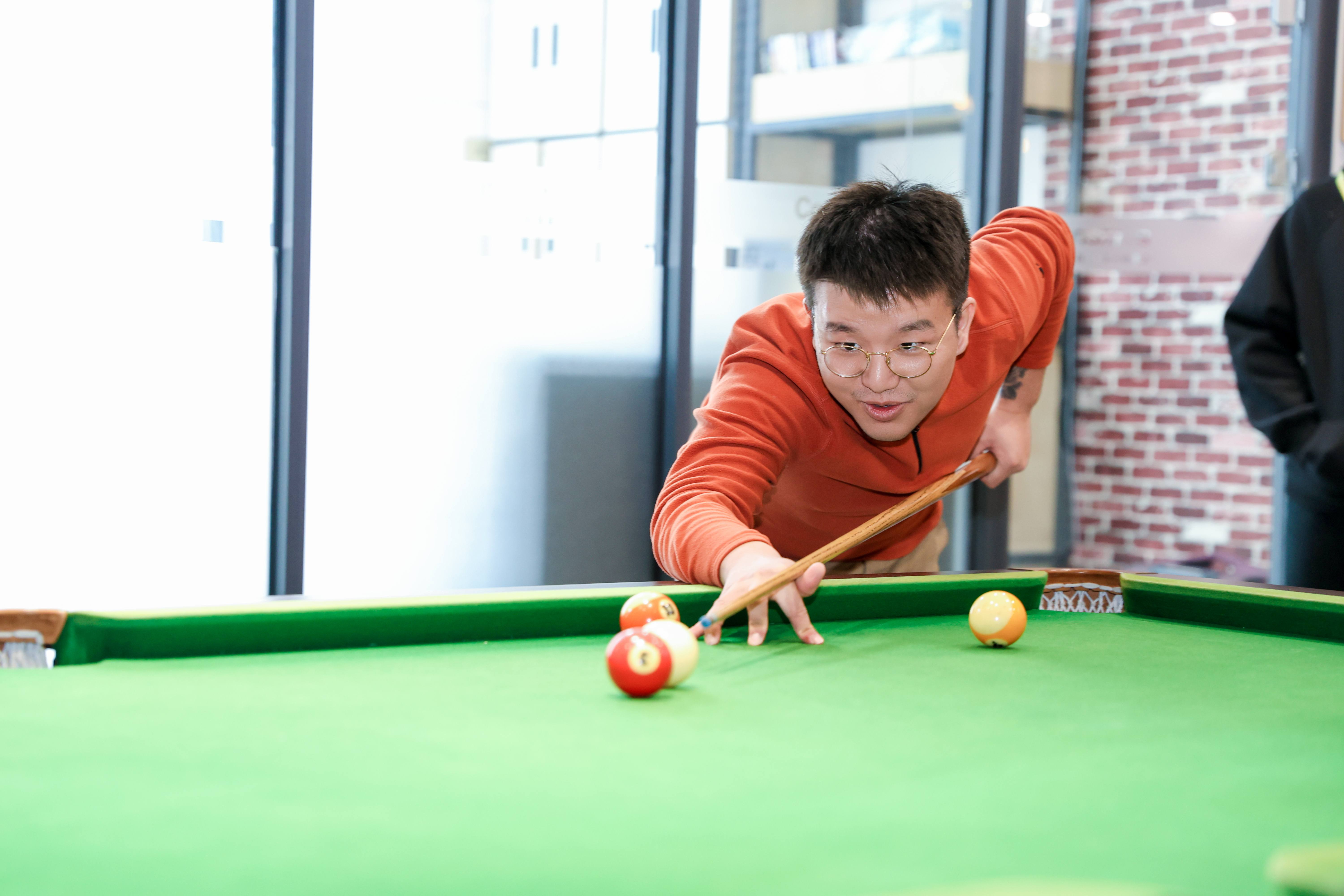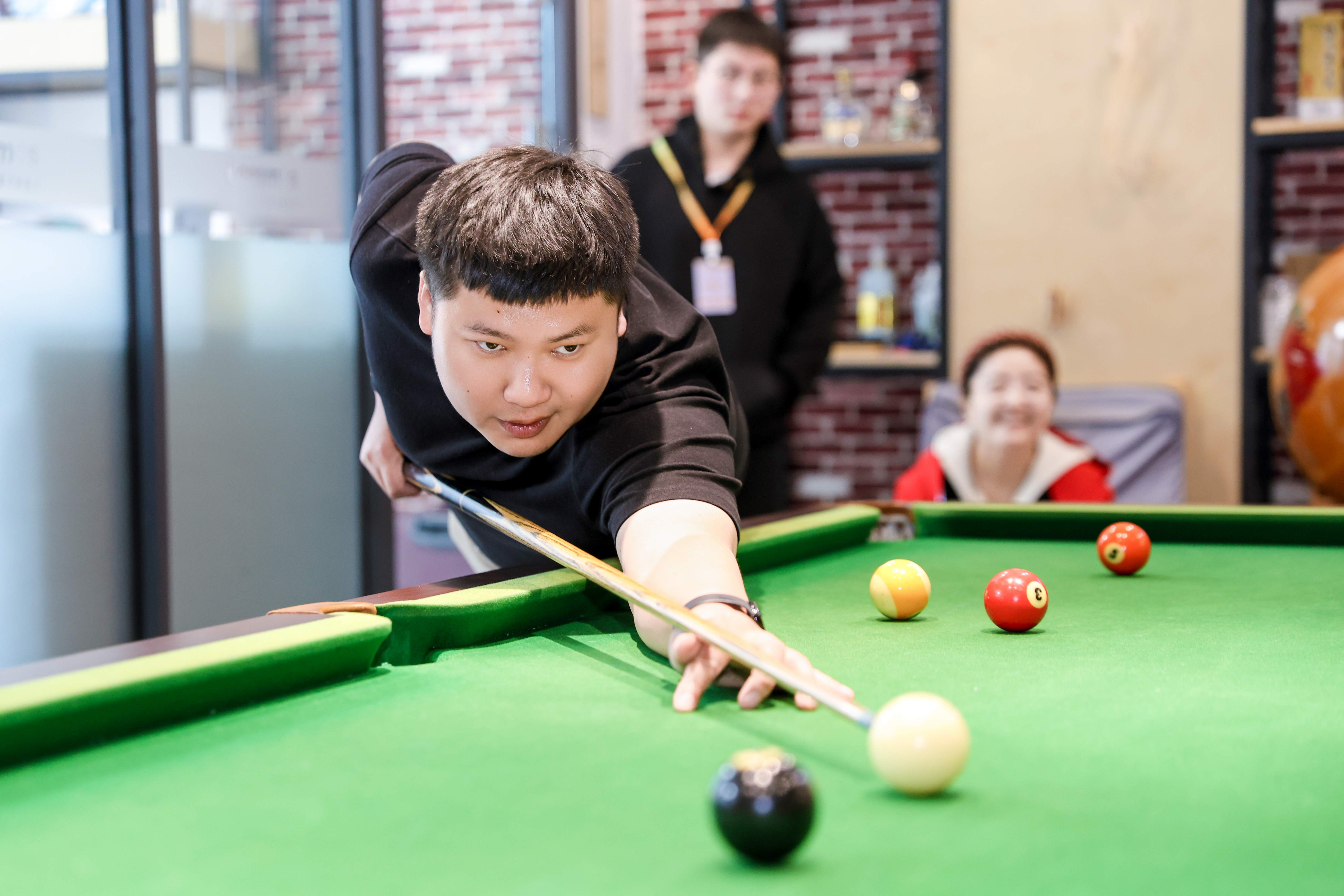 在明拓的趣味赛场,每一位勇敢参与的伙伴都闪耀着独特光芒。经过多轮激烈角逐,四大项目的优胜者相继脱颖而出。颁奖环节前,赛场氛围迎来一波高潮 ——集团董事长张少龙与子公司永鸿国际总经理桑青杰携手登场,与现场员工代表展开了一场别开生面的友谊台球赛。这场友谊赛无关胜负,却充分彰显了 “上下同心、其乐融融”的企业氛围,让大家在竞技之外感受到了领导与员工之间的深厚情谊。