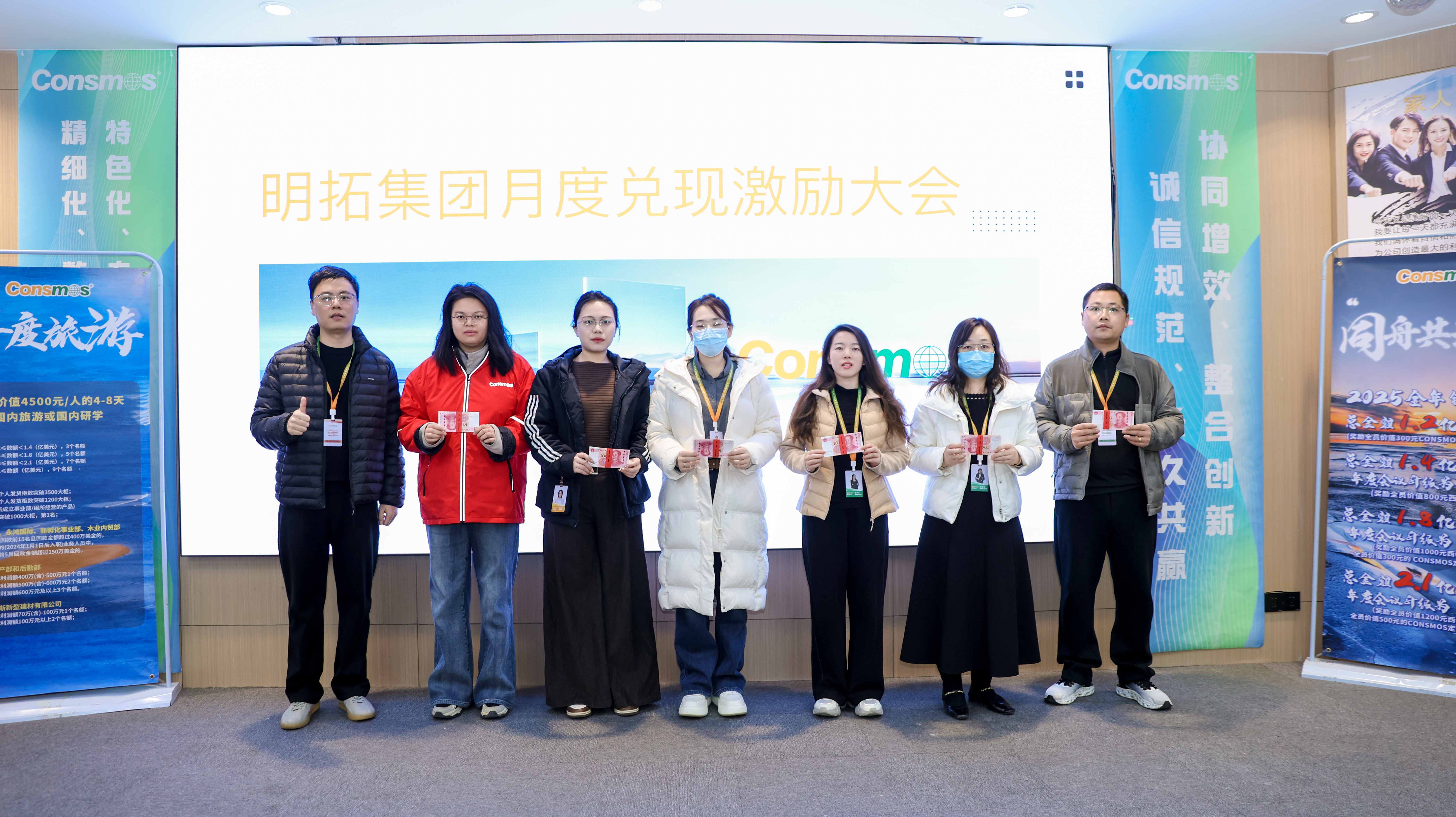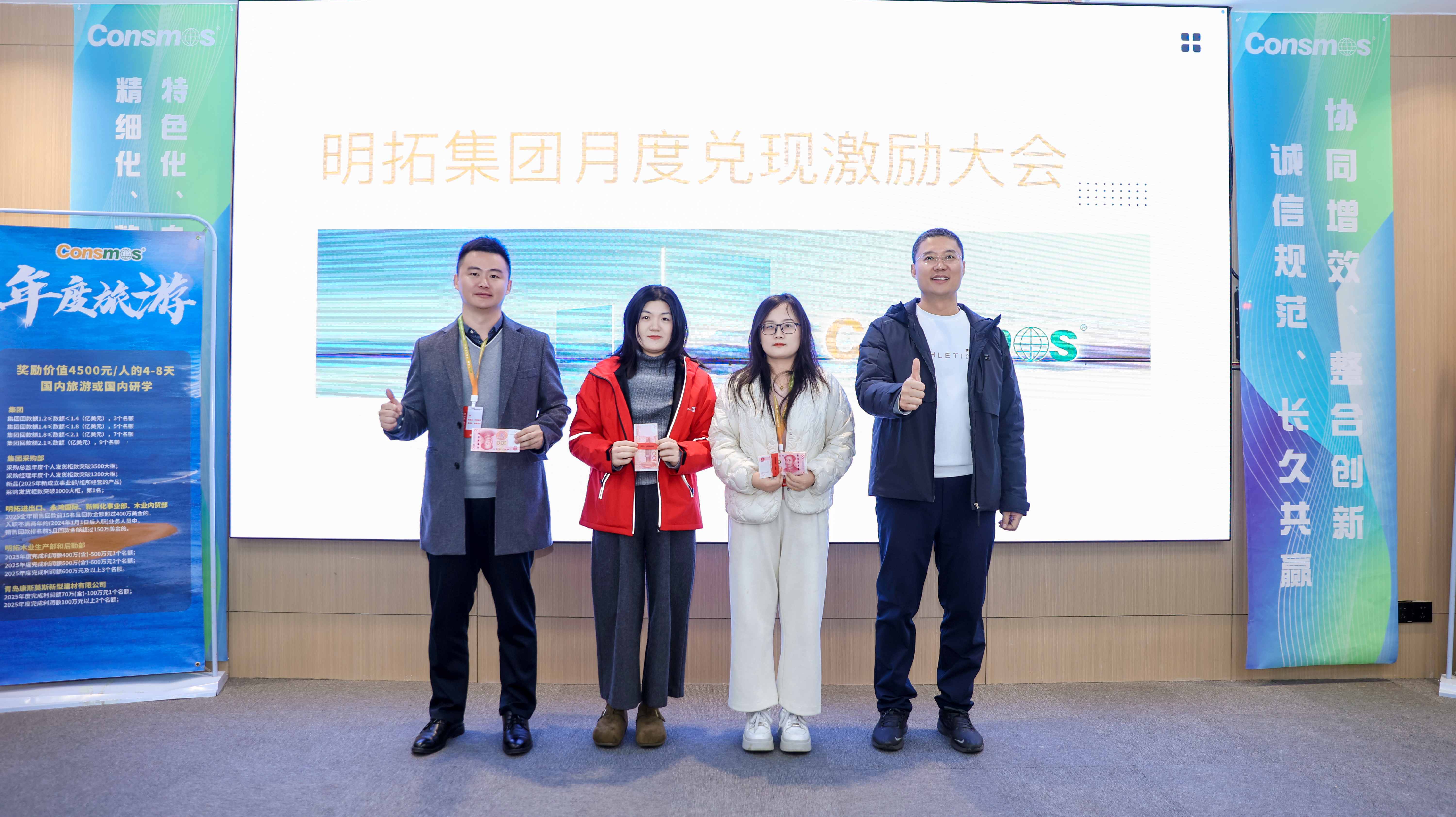 荣耀时刻,见证成长。活动现场为11月份在各项工作中有突出表现的同事们举行了颁奖仪式。这些同事们在销售业绩、客户开发、产品创新等多个领域表现优异,用实干与拼搏赢得了属于自己的荣誉。掌声与喝彩声中,每一份奖励都承载着集团对大家辛勤付出的认可与肯定,更激励着在场每一位明拓人奋勇争先、再创佳绩。