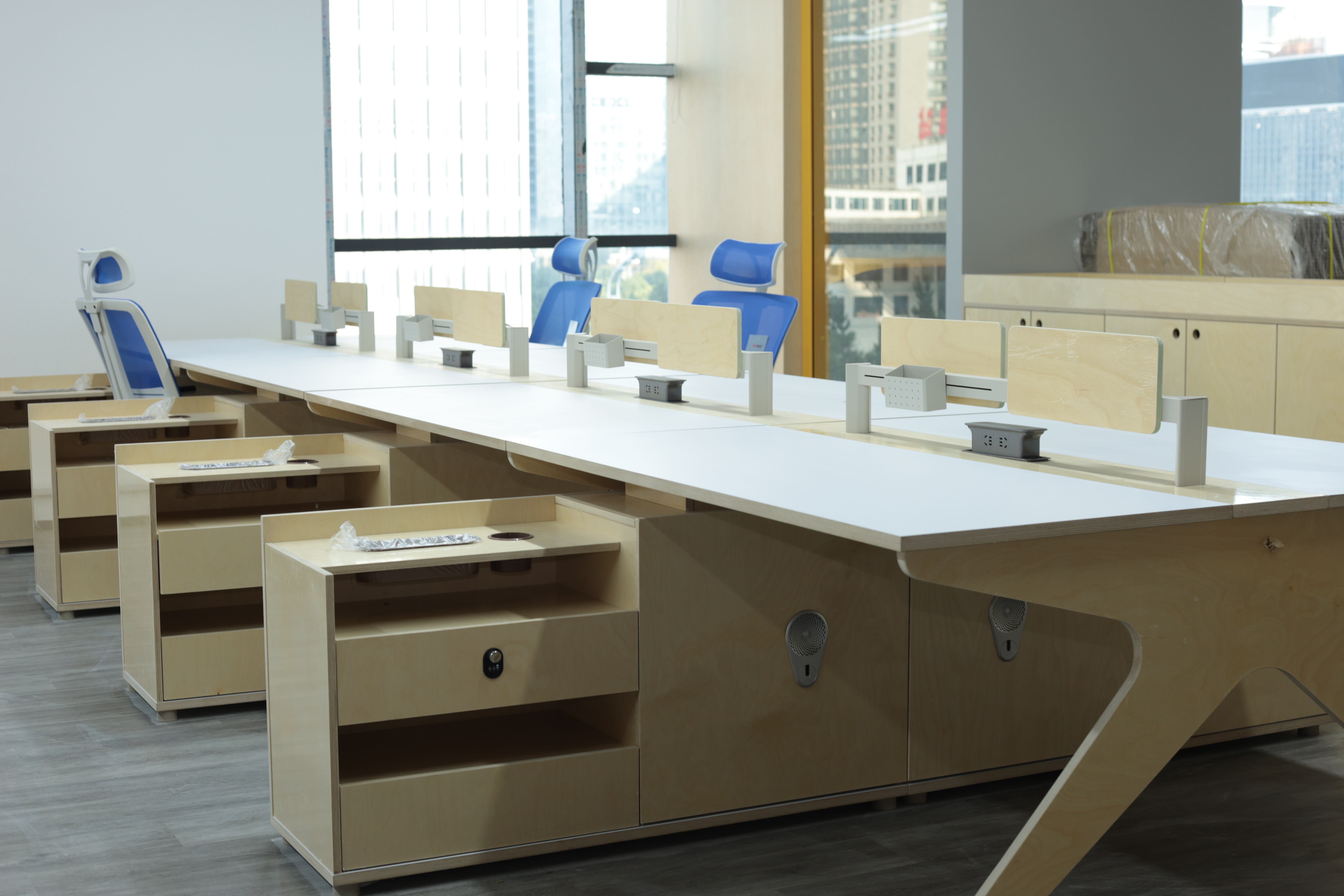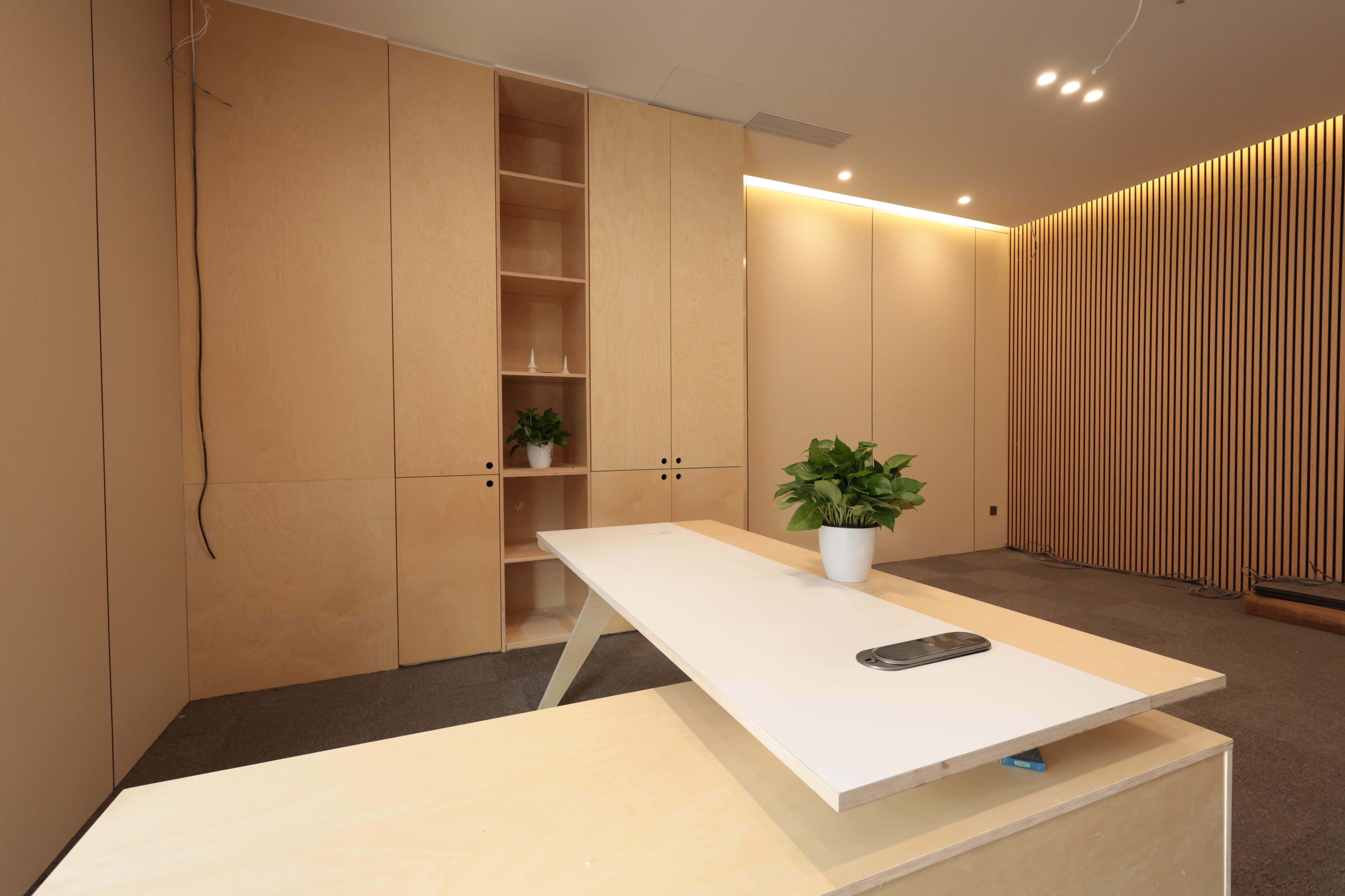 我们采用海洋板定制了整片连贯的桌面与功能系统。它每日默默承载着高频的使用:密集的电子设备、厚重的资料、团队的激烈讨论与倚靠。其展现出的杰出抗变形与抗冲击性能,直观印证了明拓木业全桦木芯结构带来的核心技术优势。这并非偶然,而是明拓生产线上对含水率均衡、压力控制与胶合工艺等一系列标准化作业的必然成果。