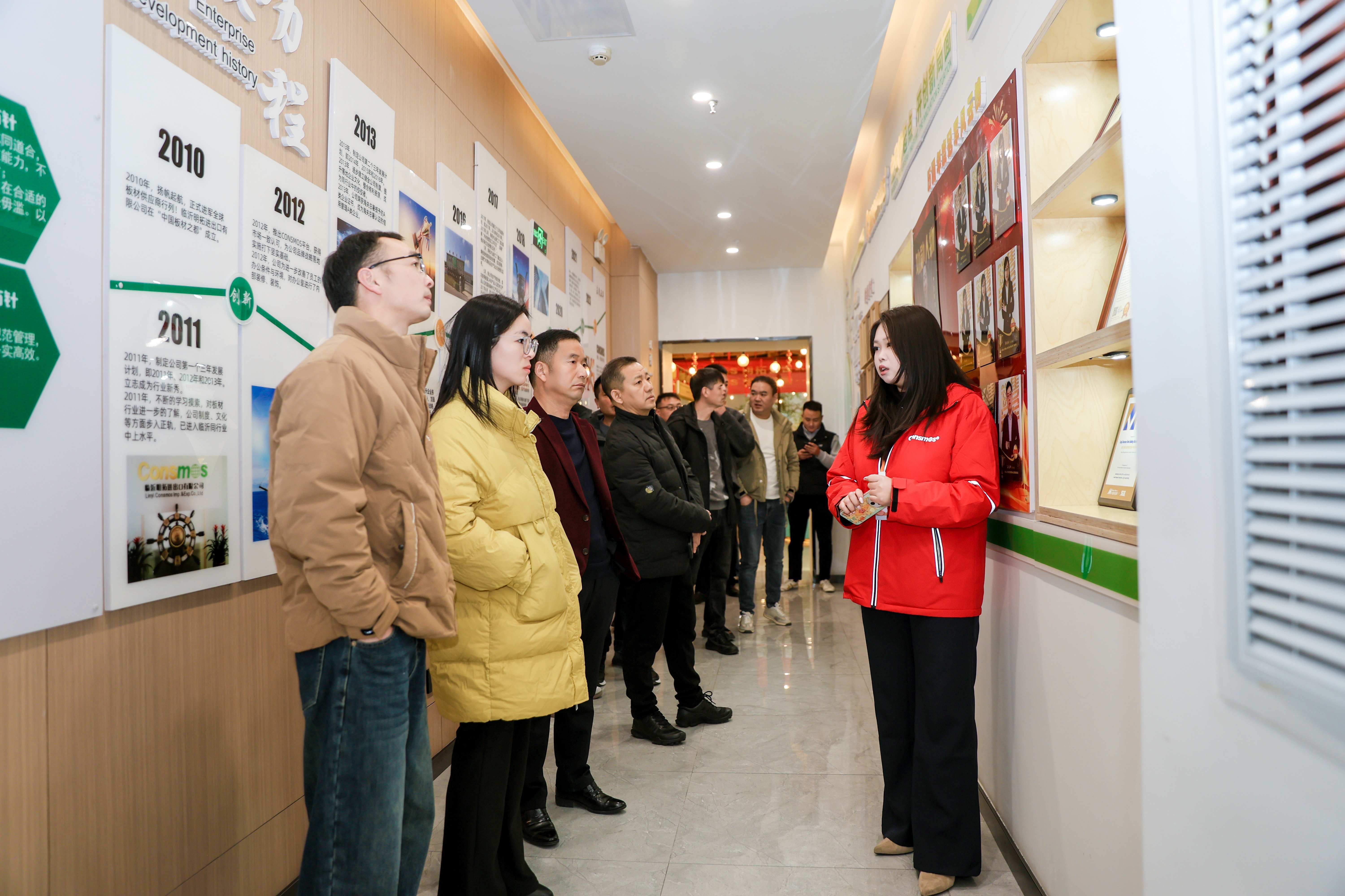 下午 13:00 起,受邀而来的供应商伙伴们陆续抵达明拓集团,开启了一场沉浸式参访之旅。在明拓集团员工组成的专属讲解团的带领下,大家走进 3000 余平的办公区域,循着企业发展的足迹,感受现代化的办公氛围与浓厚的企业文化。从 “诚信规范、长久共赢” 的企业价值观到 “打造智慧发展团队,让世界爱上中国造建材” 的企业使命,从发展历程的珍贵印记到各部门协同运转的高效场景,每一处细节都生动诠释着明拓 “大家的明拓,共同的事业” 的核心主张。