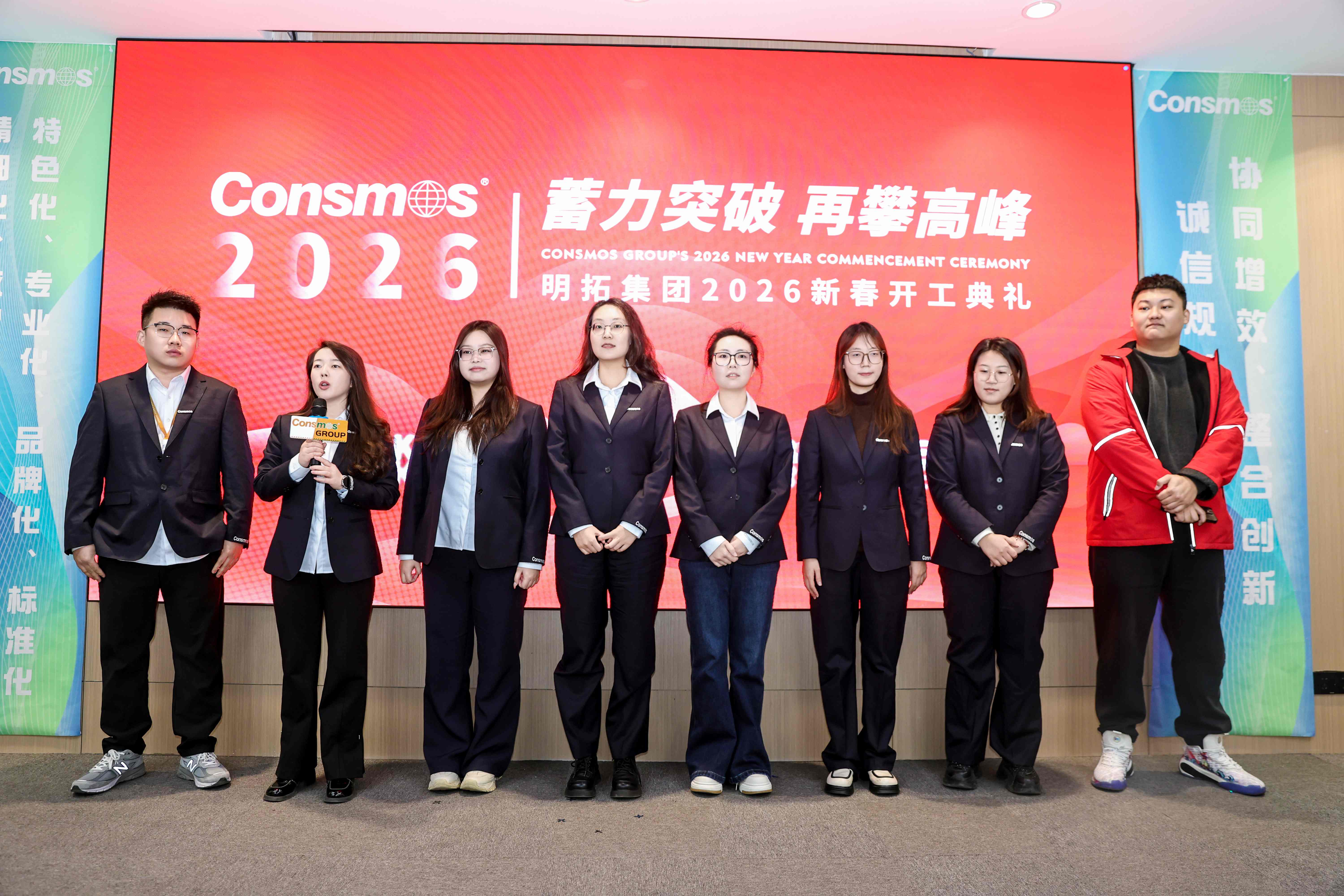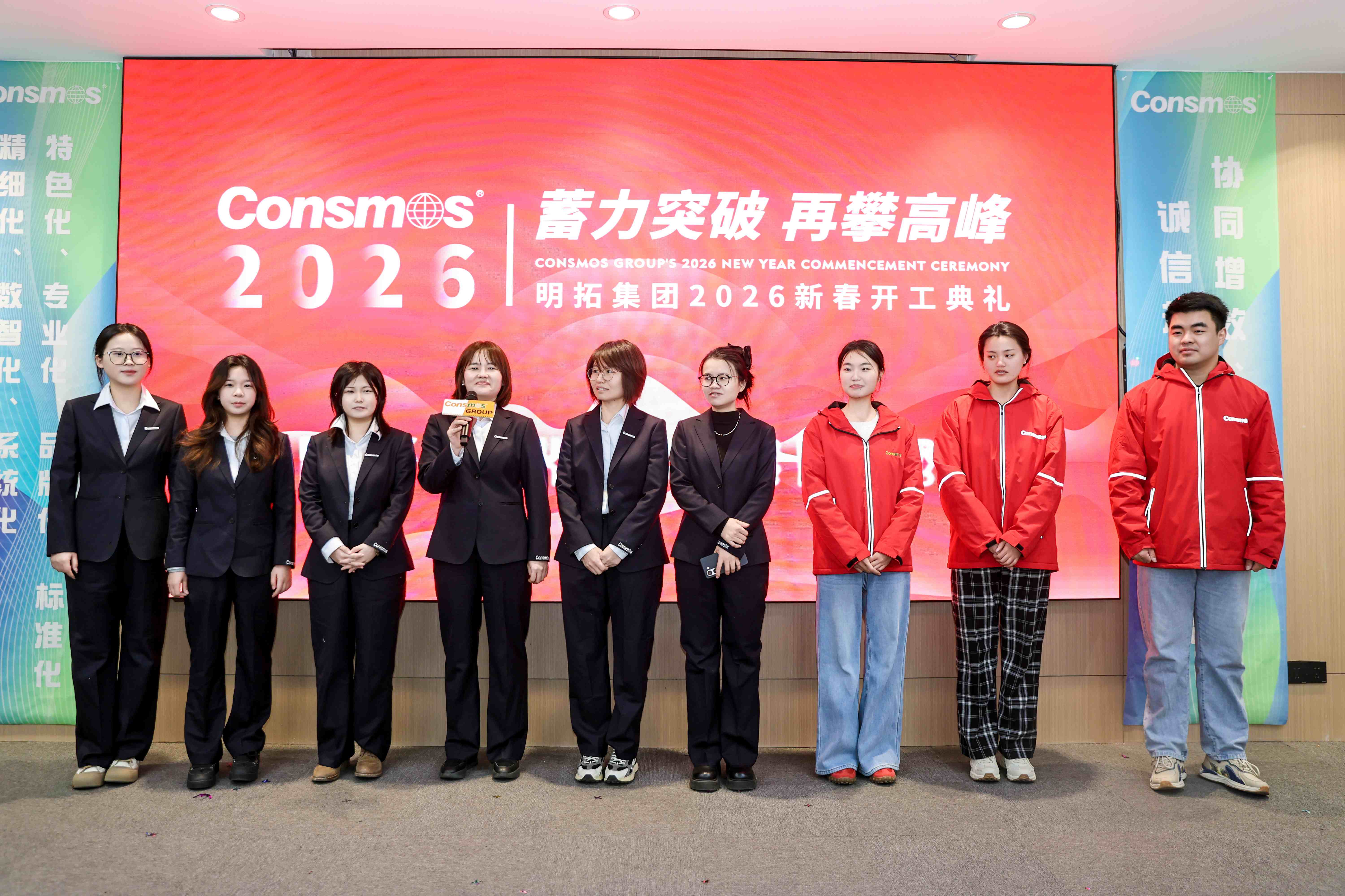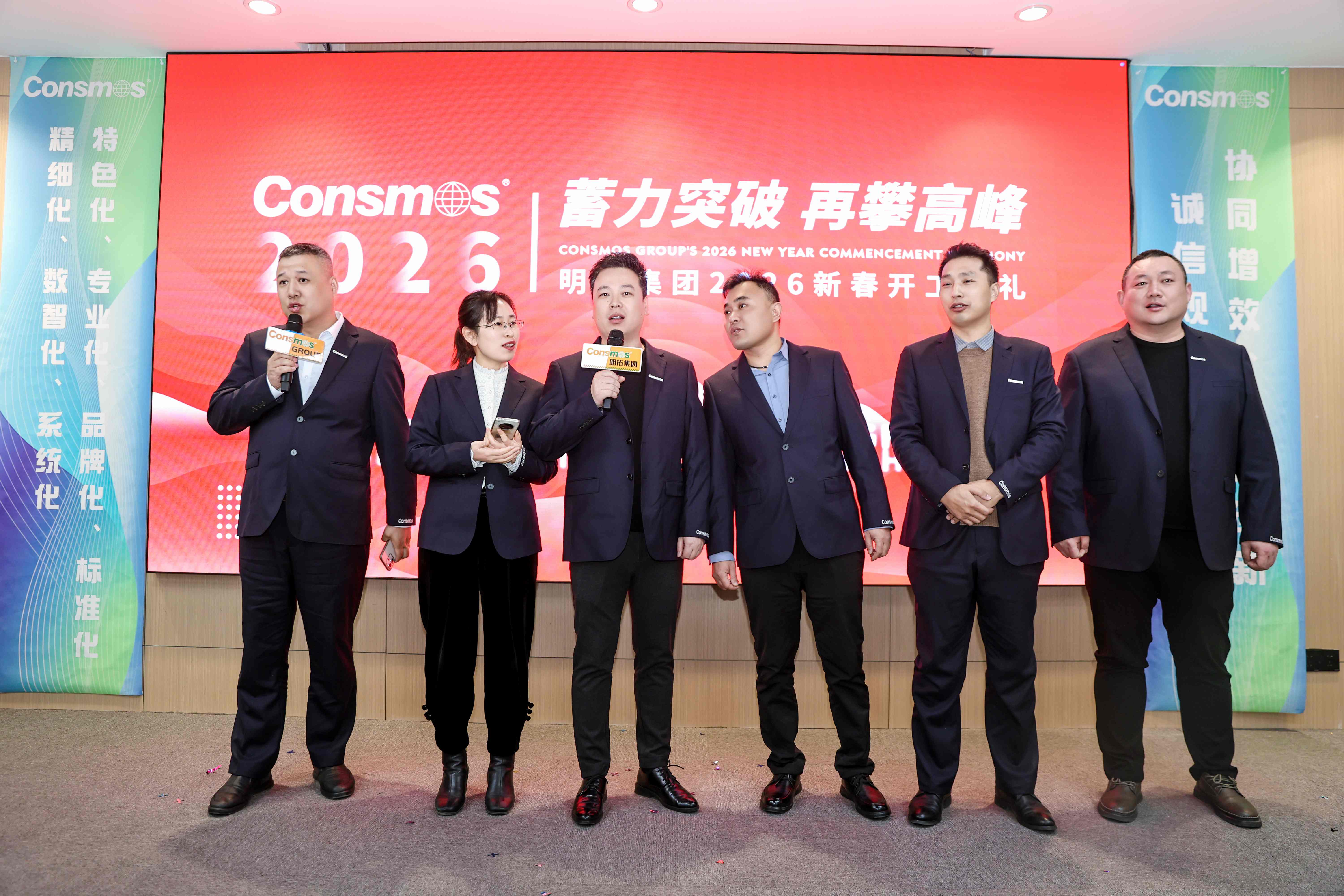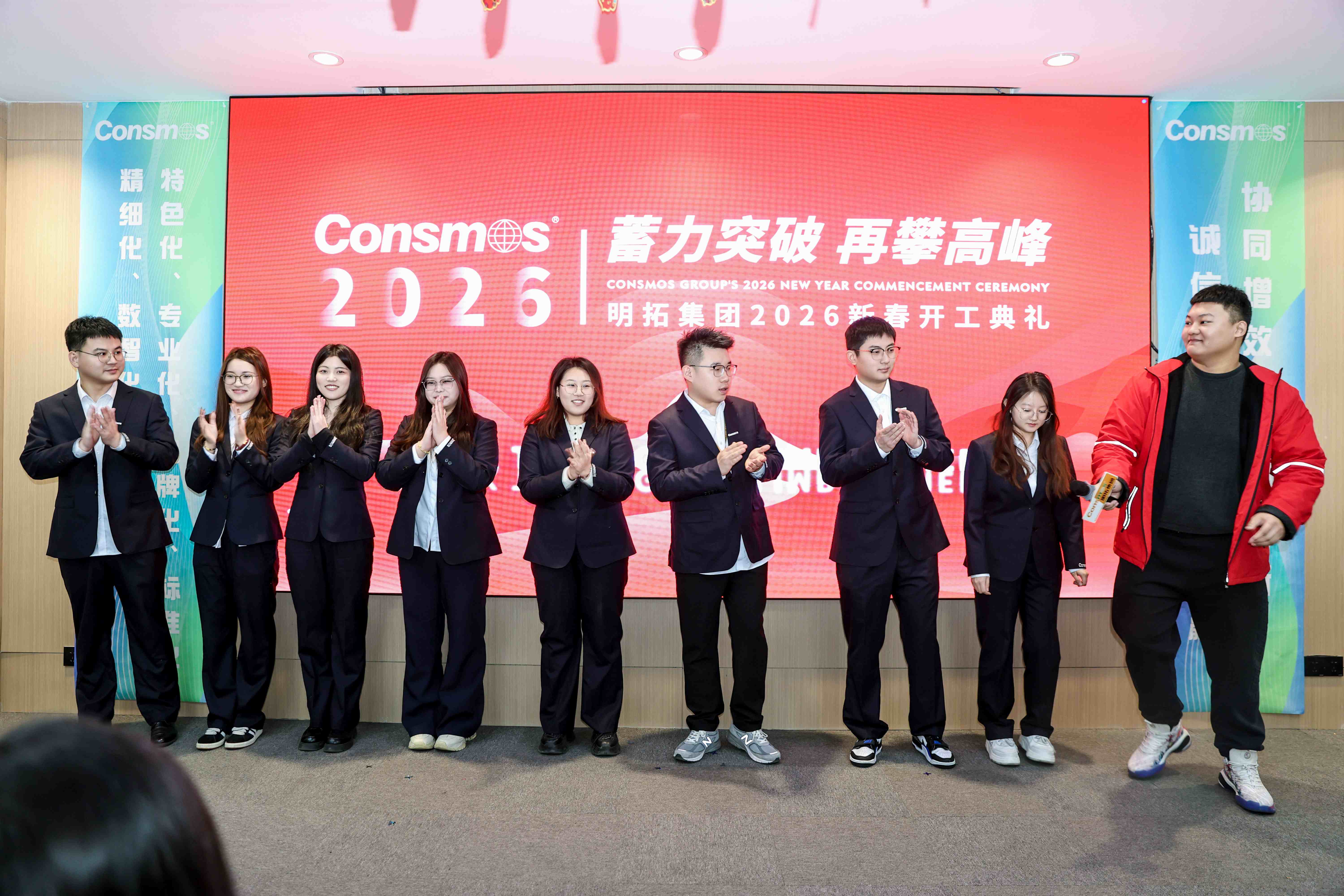 活动伊始,集团各分子公司、供应链相关负责人依次登台致辞,为全员明晰了前行方向。致辞中回望过去一年,全体明拓人攻坚克难、稳步前行,在市场浪潮中斩获了亮眼成绩,这份硕果凝聚着每一位员工的辛勤付出与坚守。展望2026年,各位负责人立足集团发展全局,明确了新一年的核心任务与攻坚方向,号召全体同仁以更昂扬的斗志、更务实的作风,在各自岗位上深耕细作、奋勇争先,以年度目标的圆满达成,为集团长远发展筑牢根基,携手奔赴高质量发展新征程。