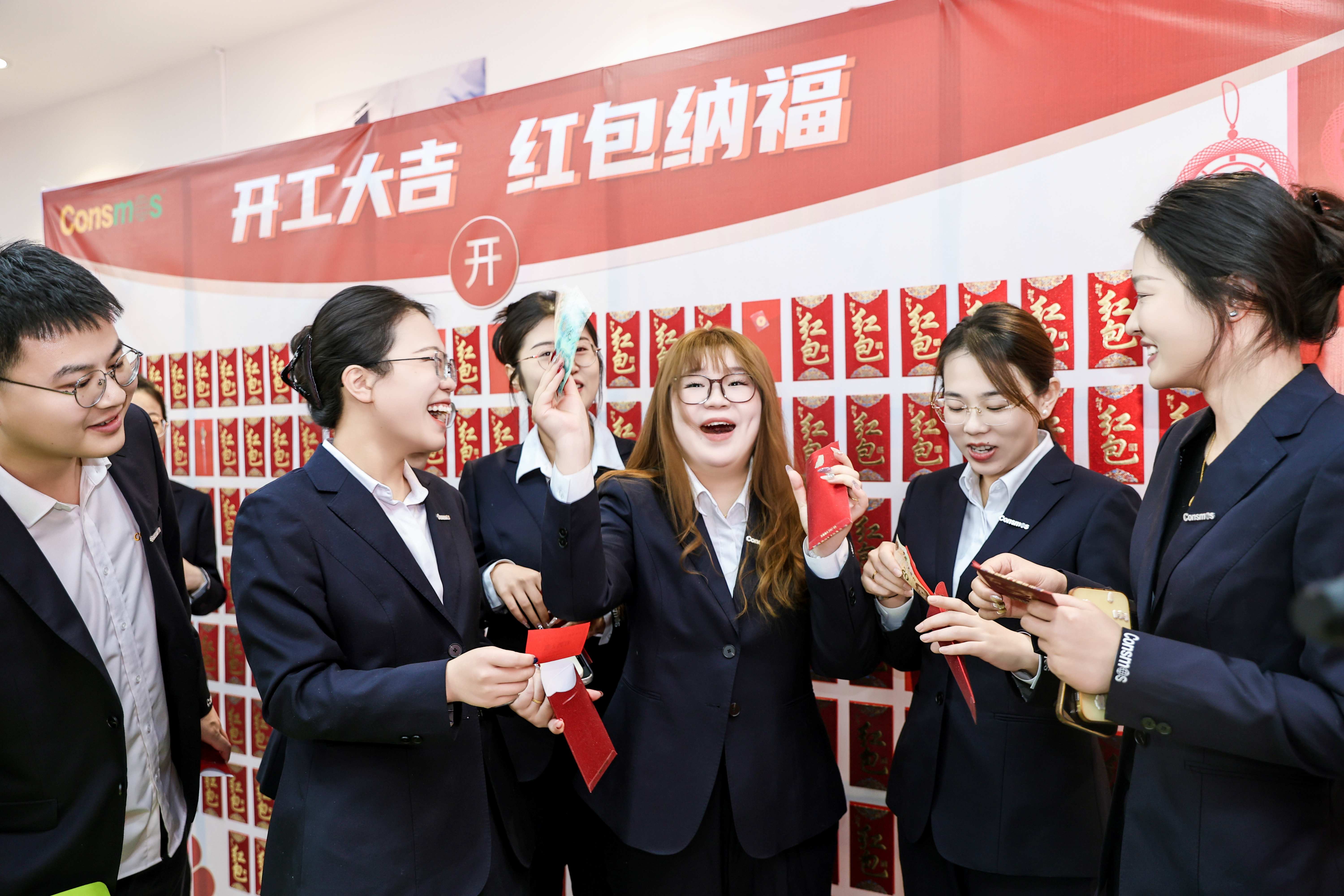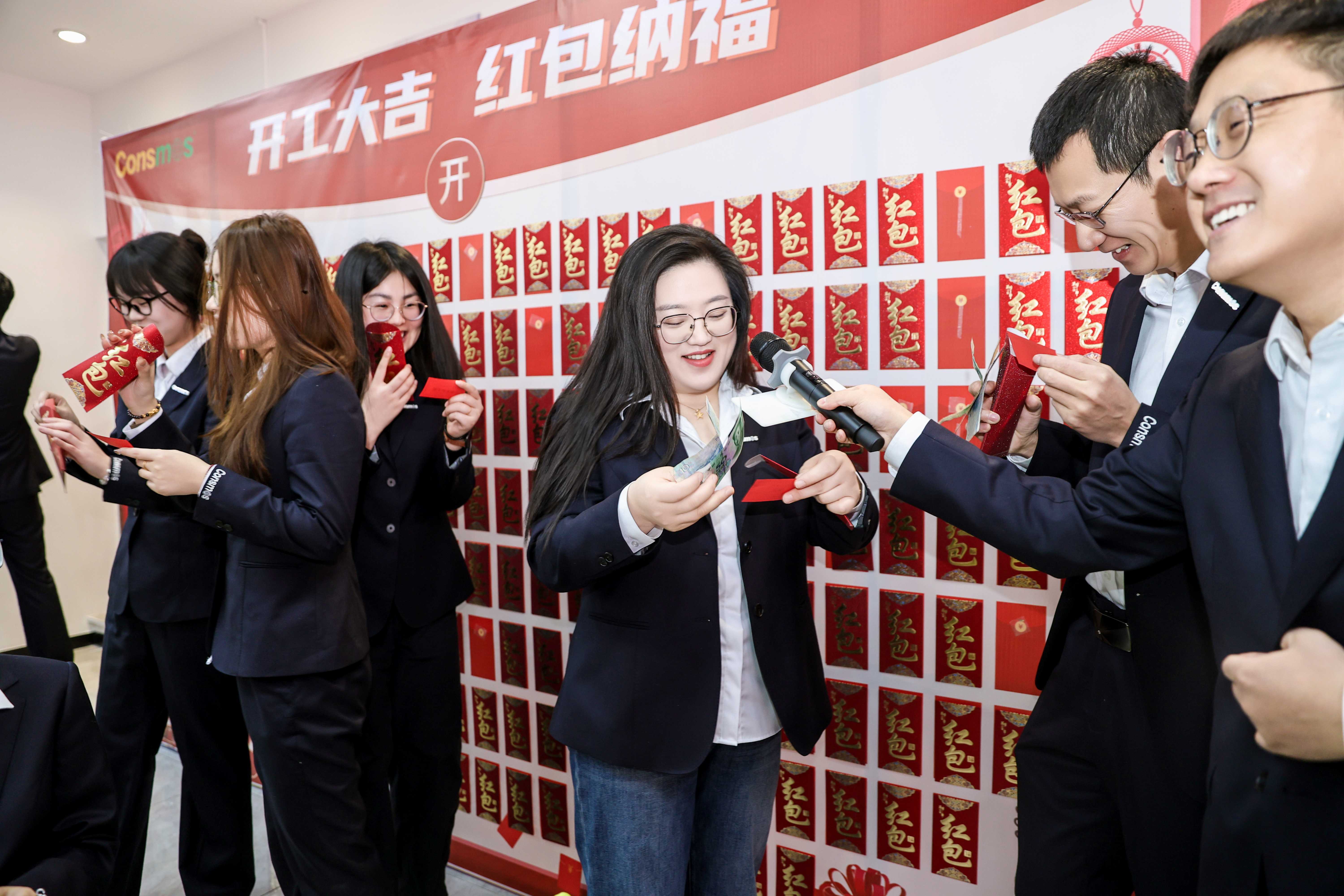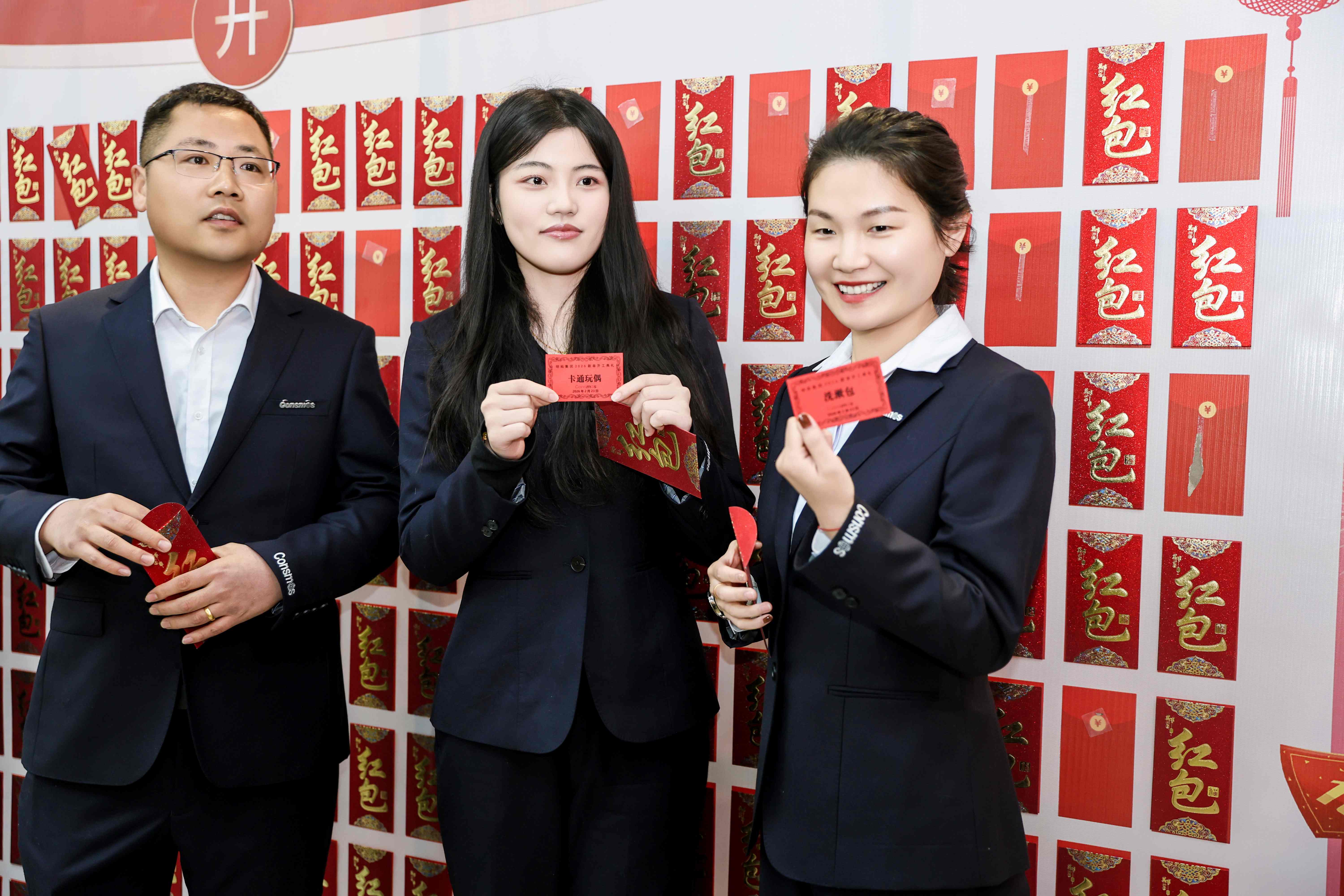 紧随致辞,各团队轮番登台展示风采。从深耕海外市场的外贸团队、到专攻核心产品的专项小组;从筑牢供应链防线的采购、品控团队,到护航稳健运营的财务、风控团队,再到肩负后勤保障的行政、人力等团队,各队伍精神抖擞、气势如虹,齐声重温年度目标,喊响铿锵口号,尽显明拓人的担当与斗志。每支团队展示完毕后,均现场抽取开工红包,在喜庆氛围中为新一年讨得好彩头,更坚定了全员同心奋进的信心。
