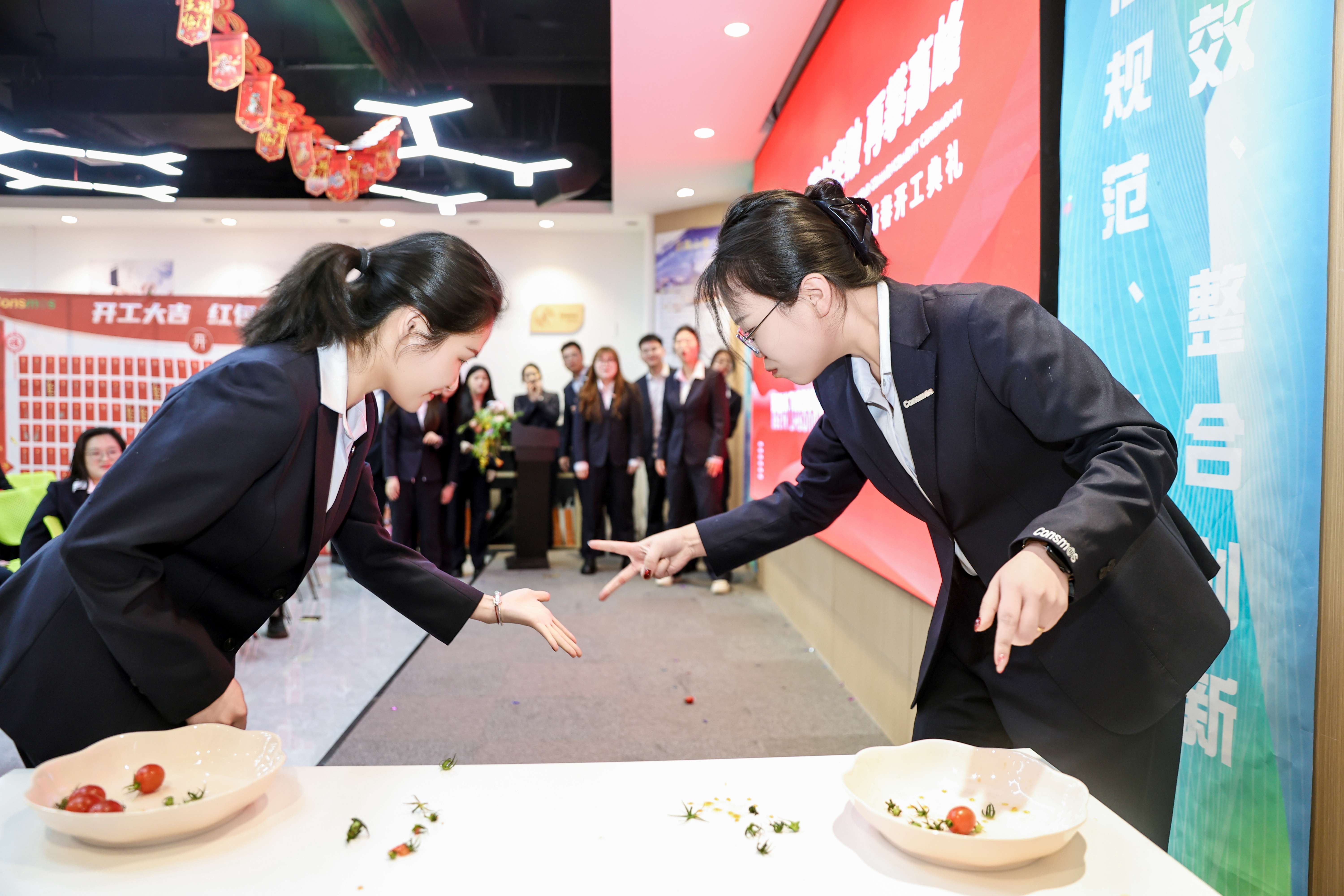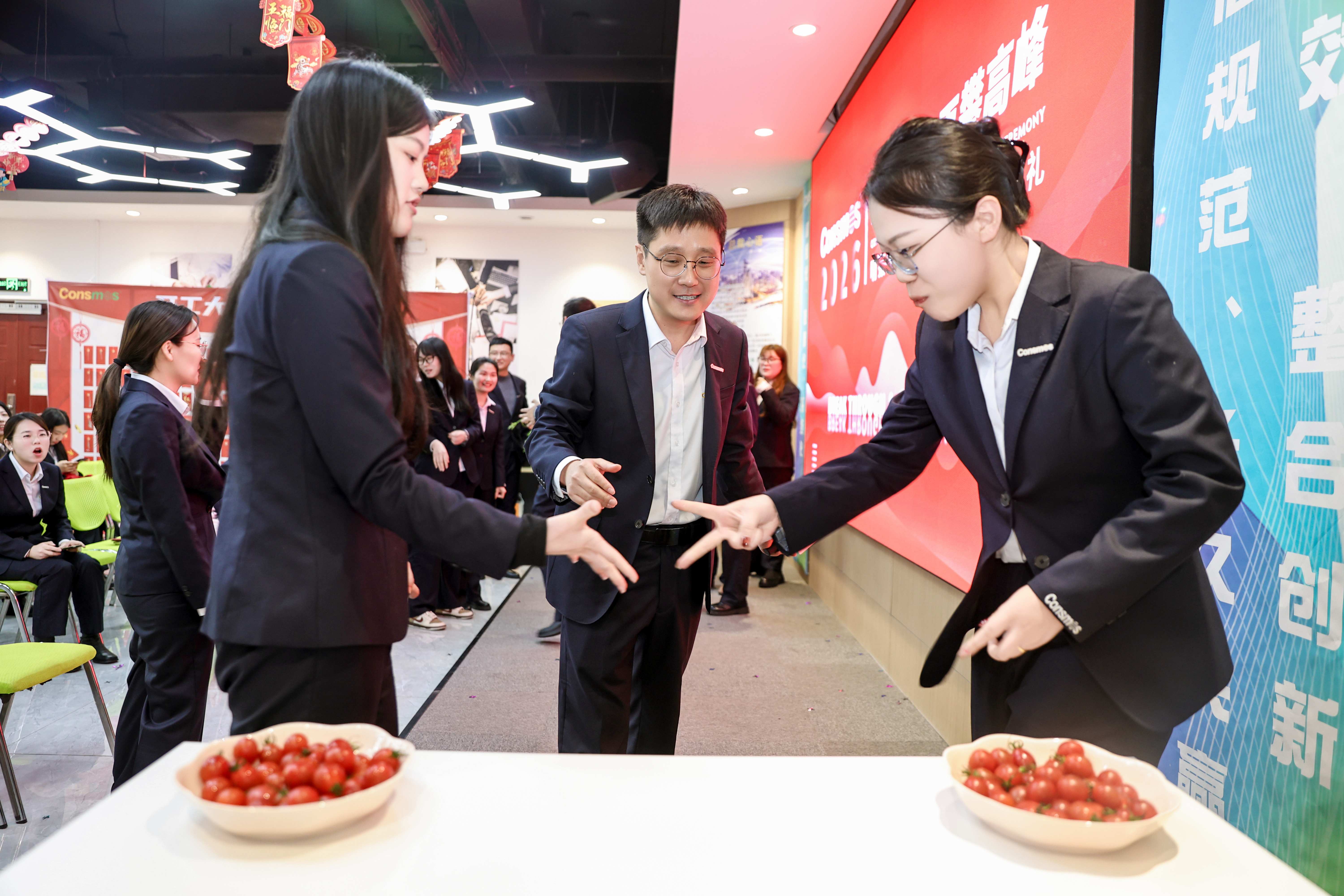 仪式后半程,听音识曲、看图猜台词、“柿柿”如意三大趣味游戏轮番上演,将现场氛围推向高潮。听音识曲的旋律抢答、看图猜台词的脑力比拼、“柿柿”如意的团队PK,让全体同仁在轻松欢乐中抛开忙碌,增进了彼此情谊,凝聚了团队力量。