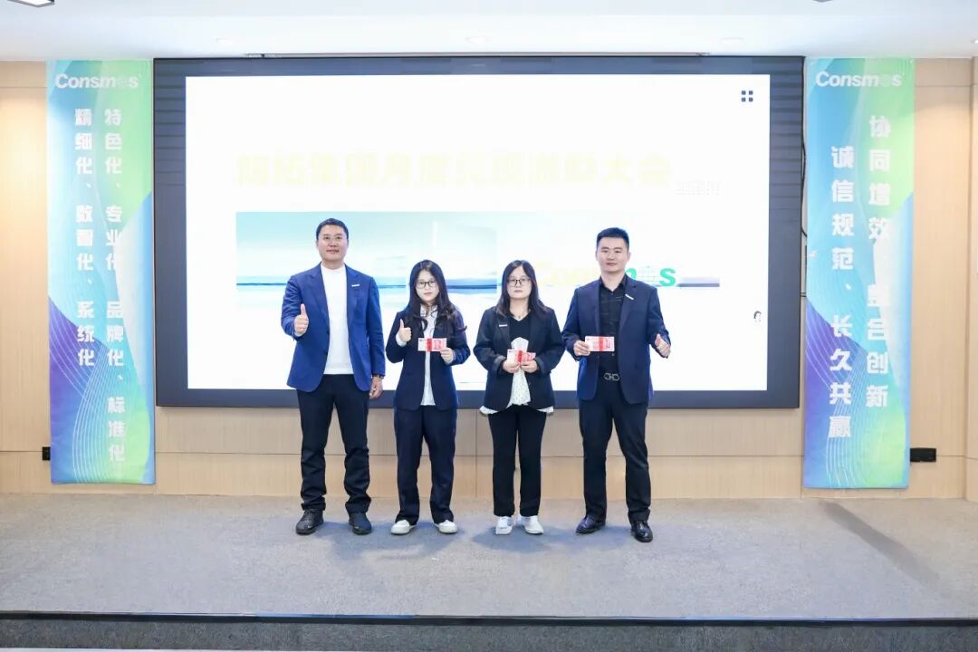 激励兑现环节,现场氛围热烈而振奋,集团对3月份在品牌建设、产品开拓、新客开发、业绩突破、部门协同等各方面表现突出的团队与个人进行隆重表彰。各类奖项的颁发,覆盖业务一线与后勤供应链岗位,既见证了优秀团队与个人的亮眼表现,也让每一份努力都被看见、每一份付出都被珍视。